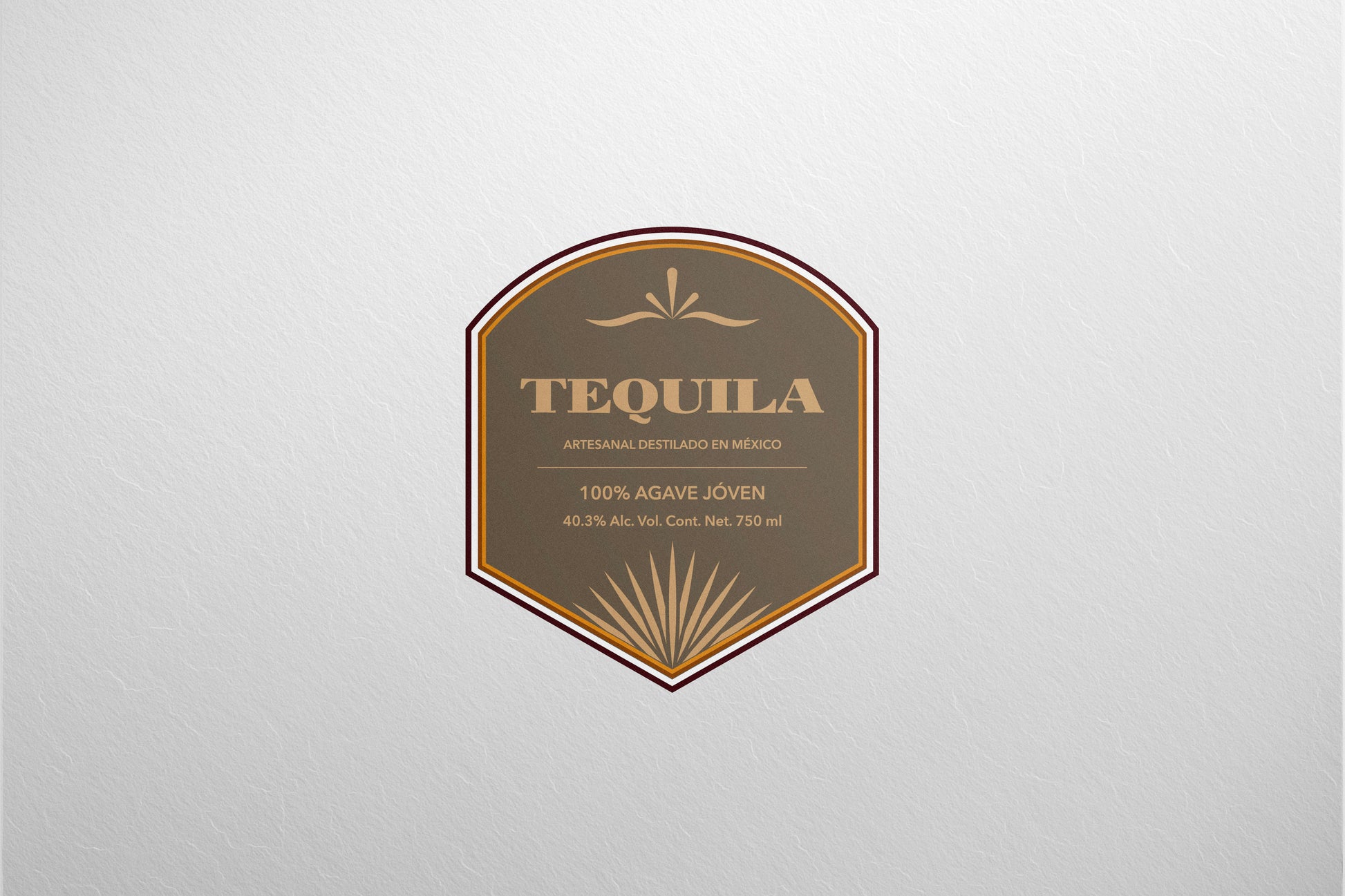 Elegant tequila bottle label design, perfect as a film/TV prop or for high-end set decoration.