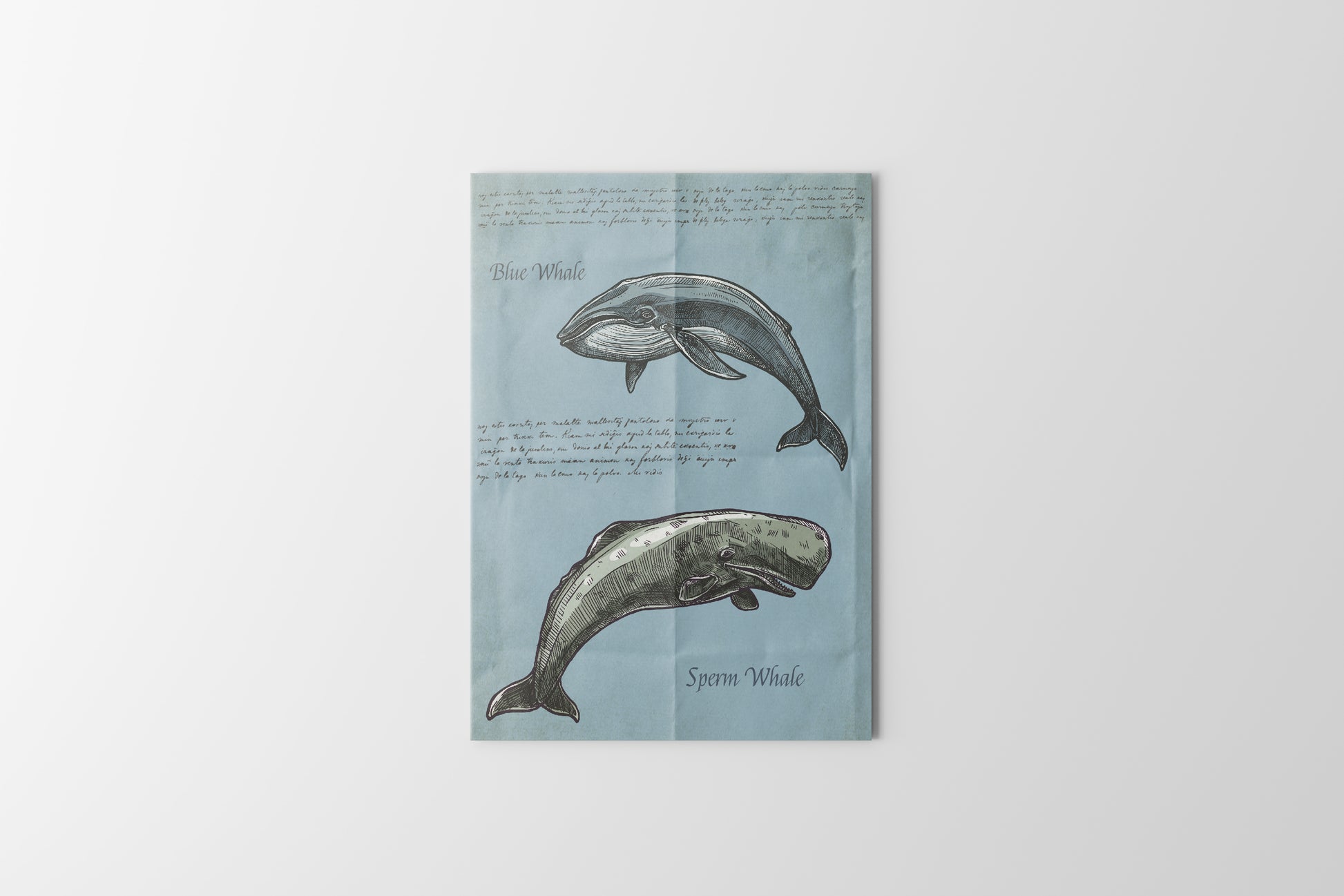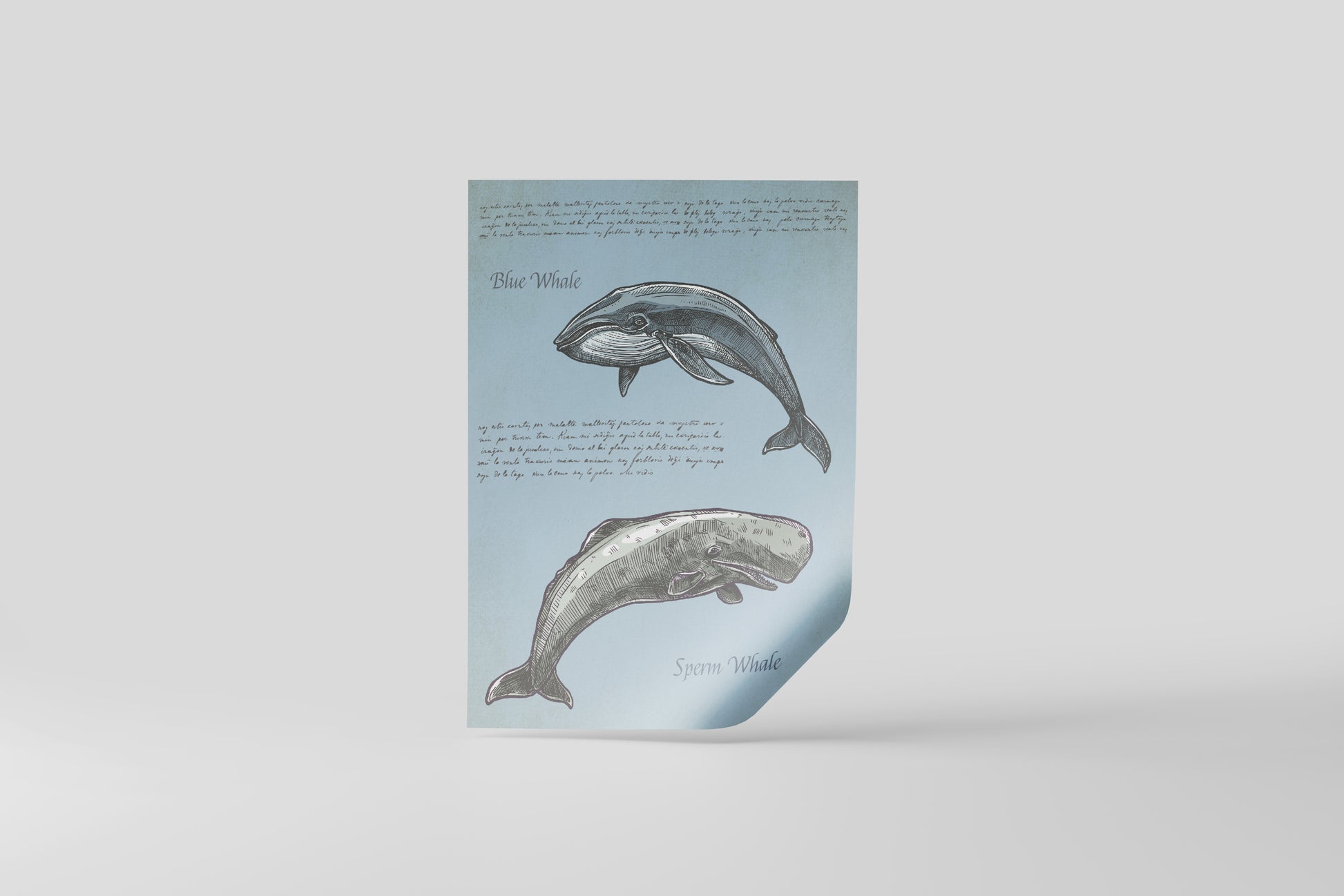 Print Animal Blue Whale & Sperm Whale Illustration 8x11cm