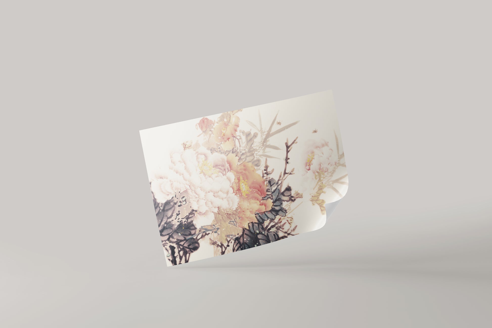 Soft oriental floral painting design, perfect as a framed wall print or elegant stage/film prop for refined interiors.