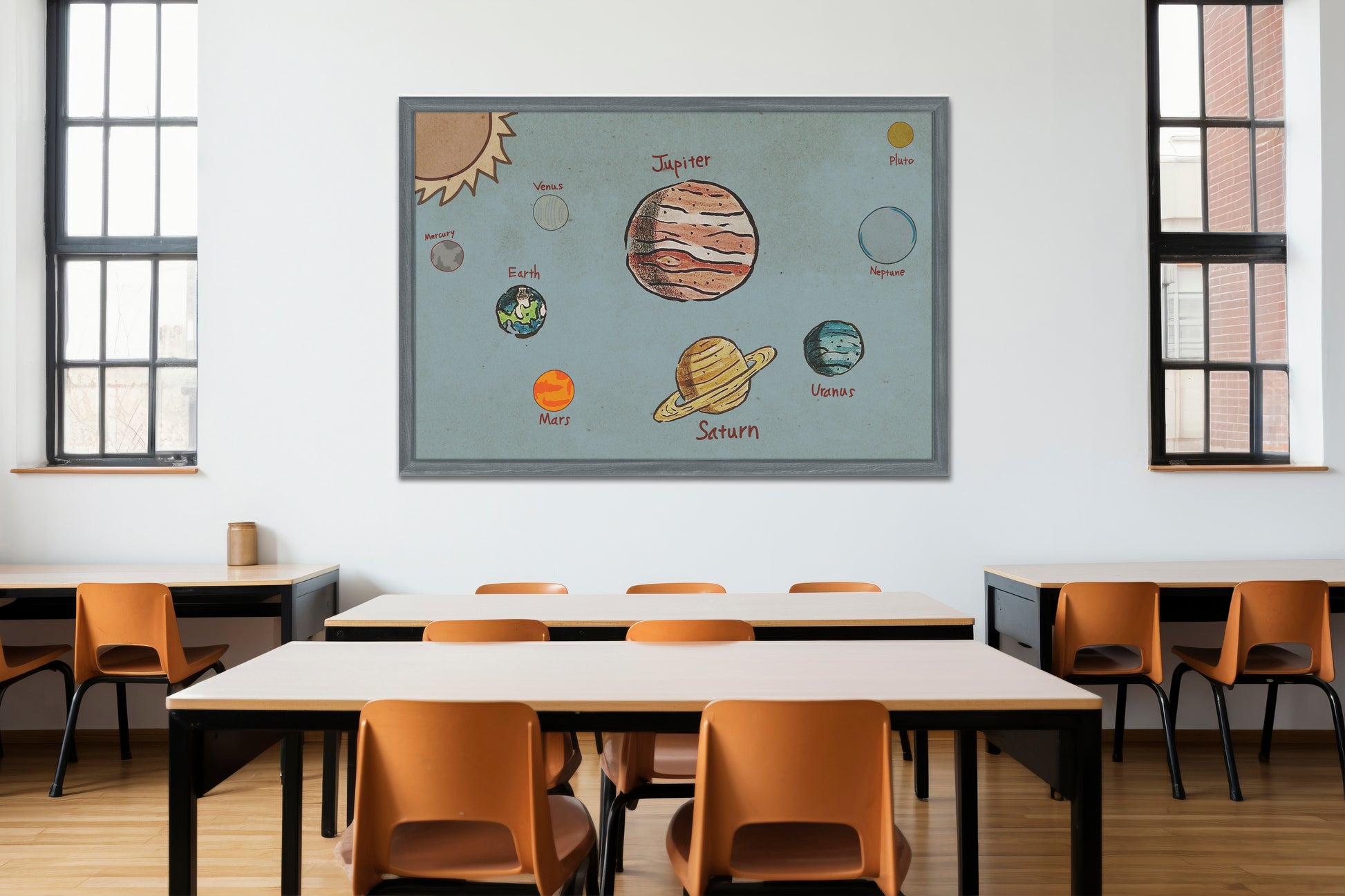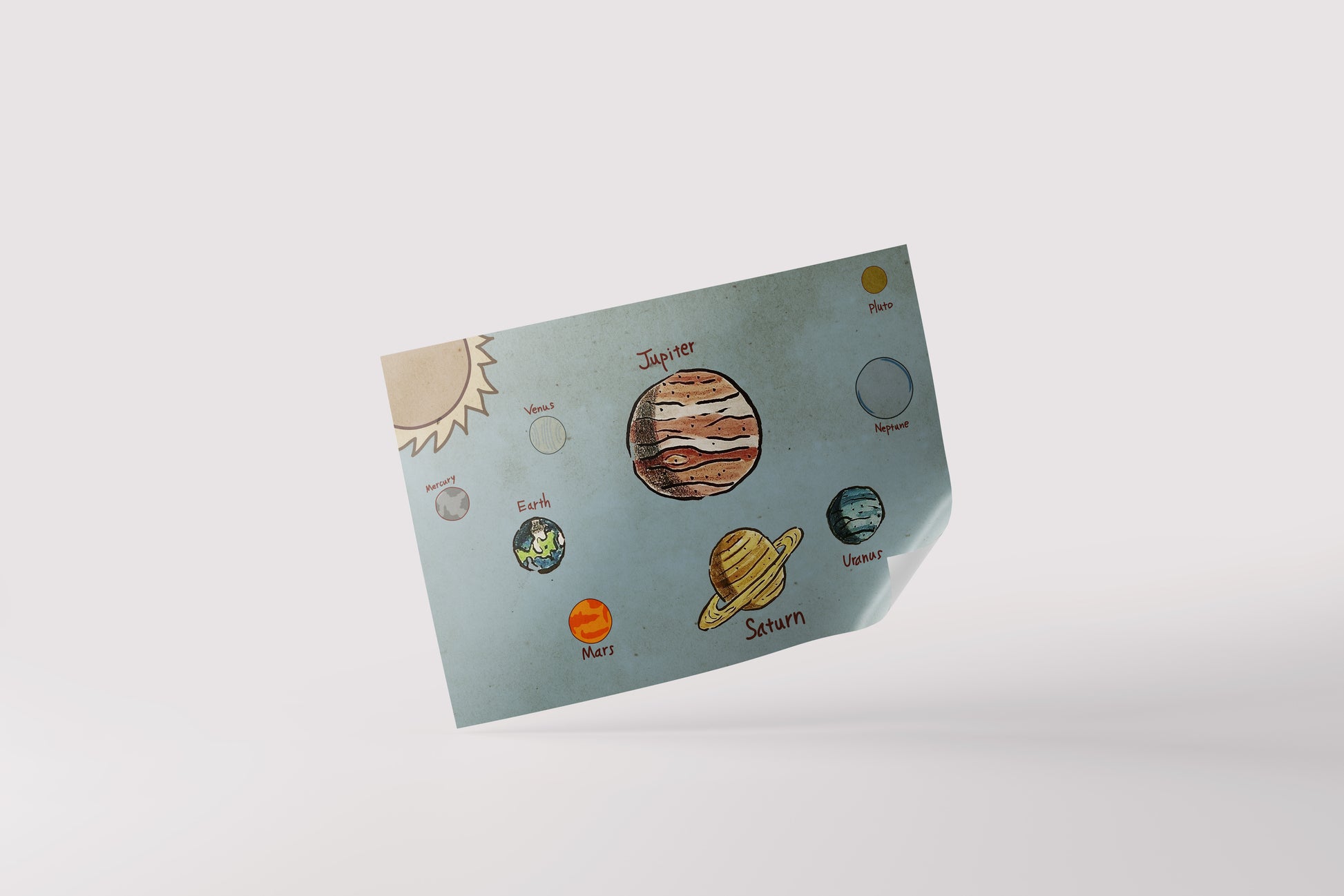 A versatile prop for school scenes, kids’ bedrooms, science rooms, or retro interiors, as well as a decorative print for educators, parents, or space enthusiasts.