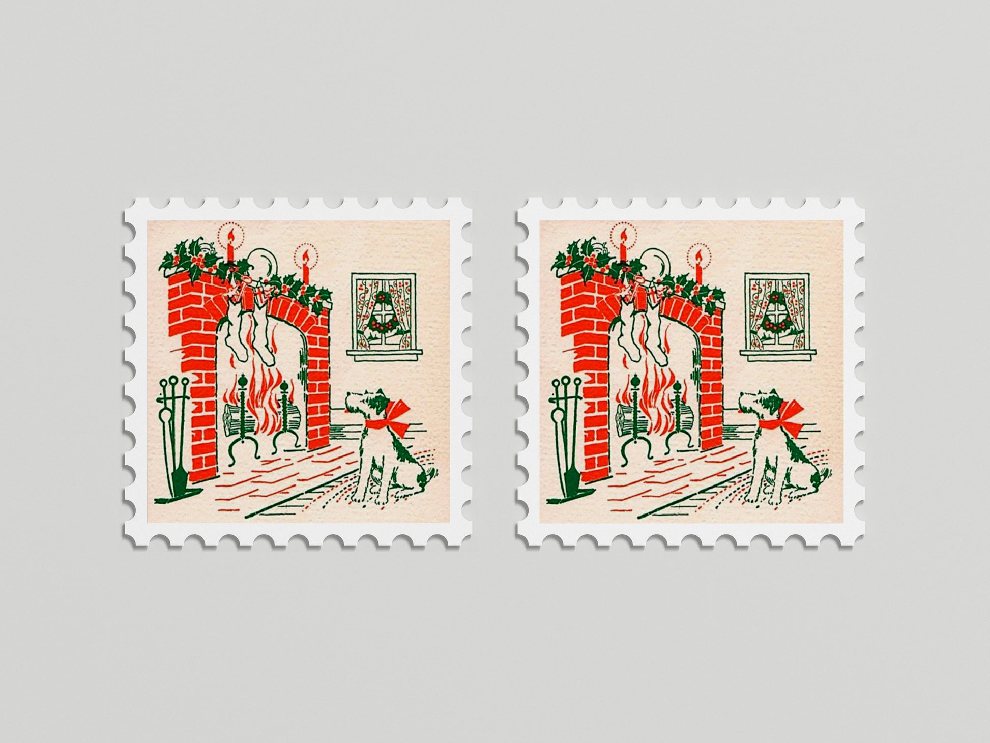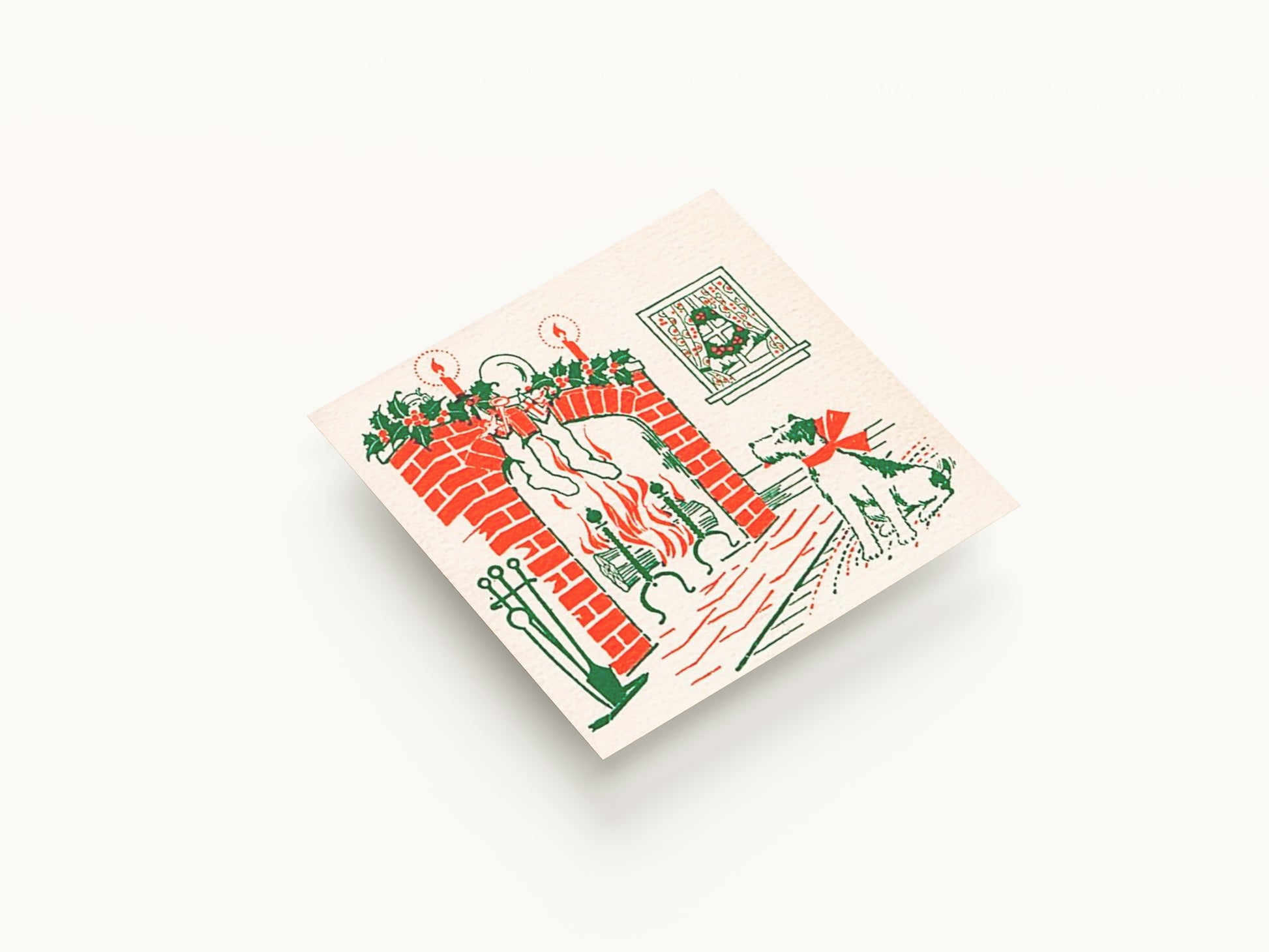 Print Xmas Christmas Fireplace Dog Vintage Illustration 10x10cm