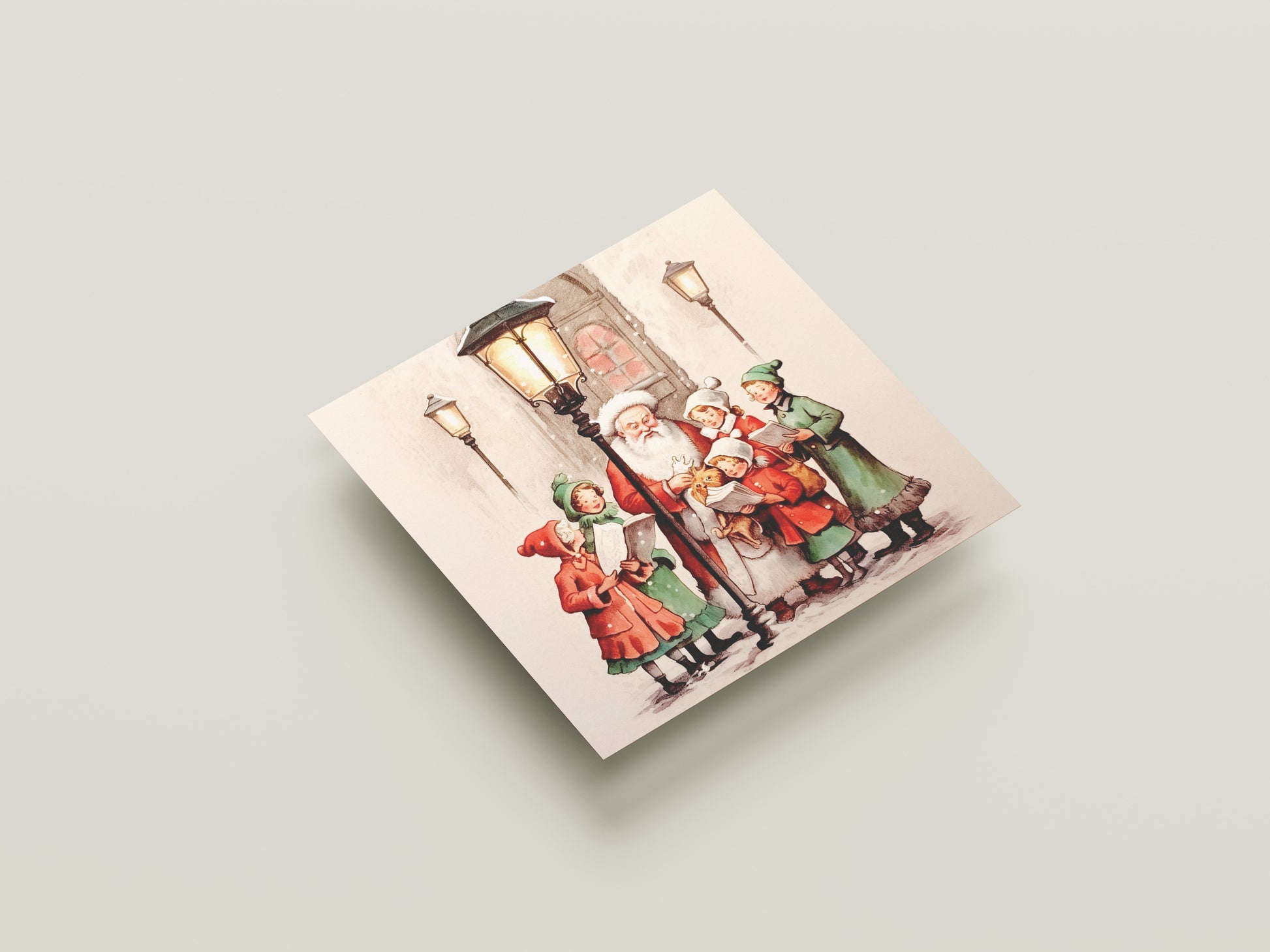 Print Xmas Santa Children Singing Carols Vintage Illustration 36x36cm