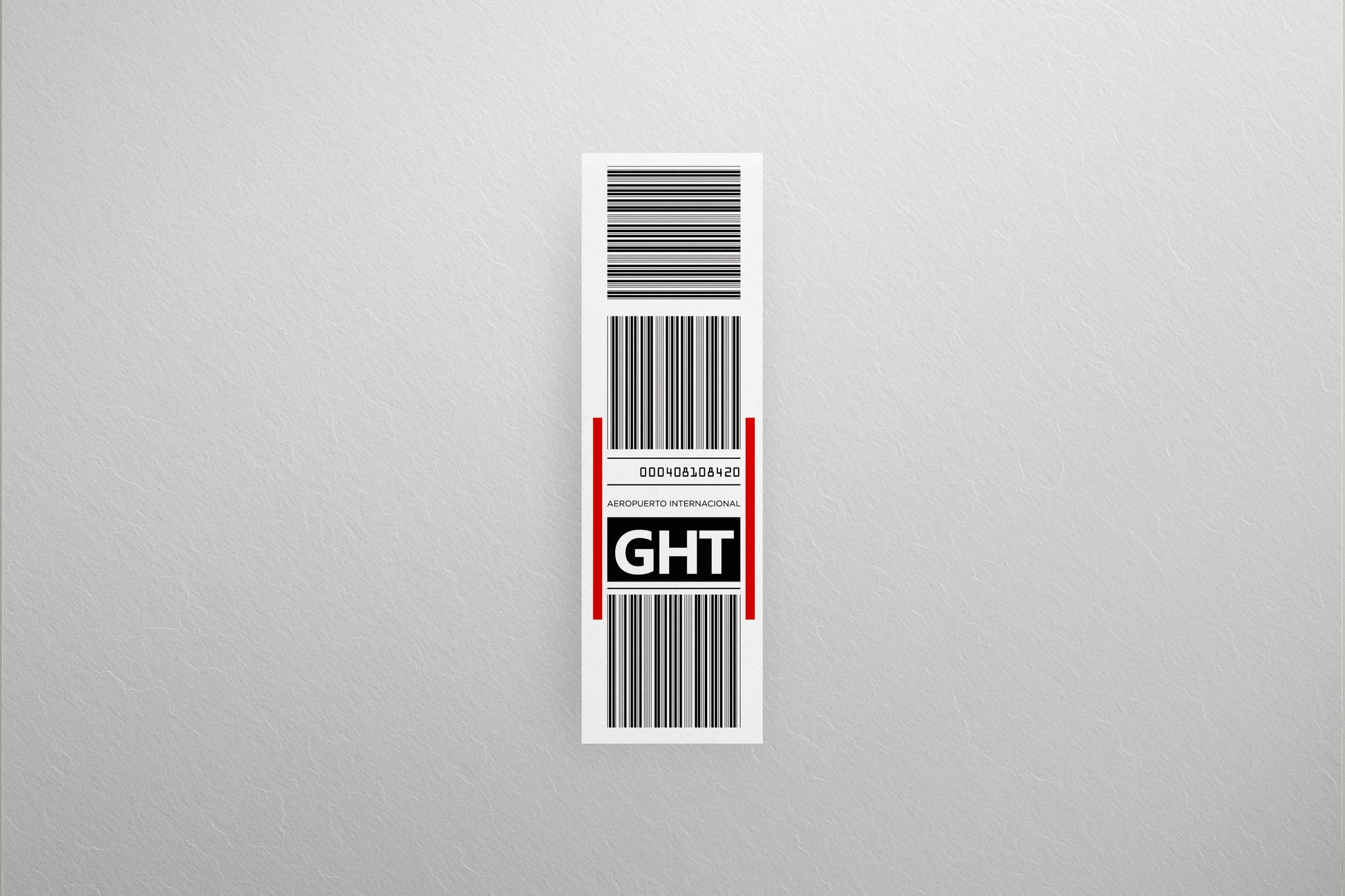 A sleek and highly realistic baggage tag layout featuring a modern, barcode-focused aesthetic. This digital prop includes multiple stacked barcode sections, a bold destination-style code centered in black and white, and striking red guide lines that heighten the industrial, transport-oriented look. Its clean structure mirrors real aviation logistics labels, making it perfect for film, TV, and commercial scenes requiring believable airport or travel-related props.