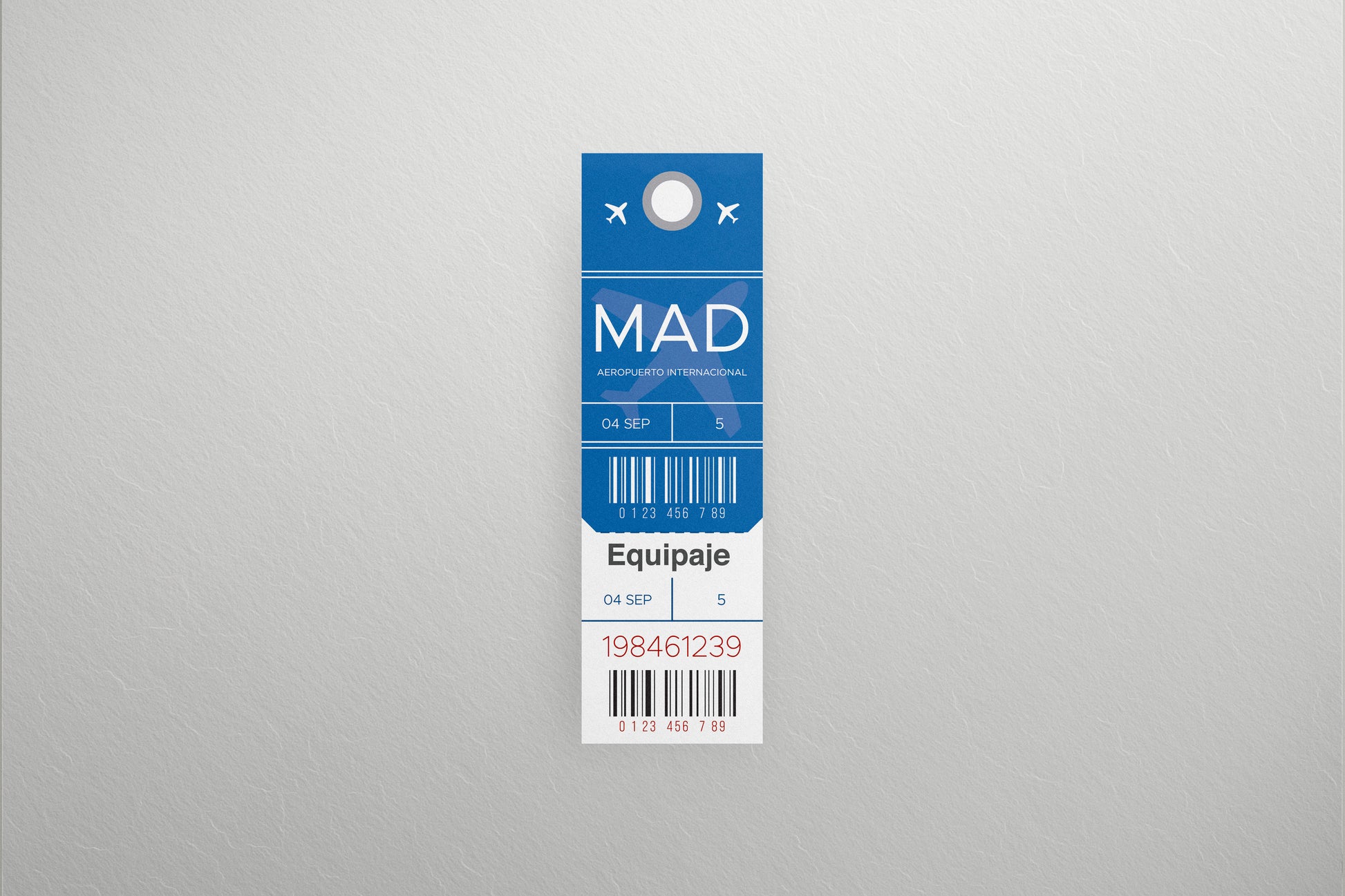 A clean, modern, and realistic baggage tag layout inspired by international airport labeling. This digital prop features a bold blue header with aviation iconography, a destination-style airport code, barcode strips, date fields, and a detachable lower section—perfect for creating authentic travel-themed set pieces. The design mimics real baggage tags used at check-in counters, making it ideal for film, TV, photography, and advertising environments that require believable airport details.