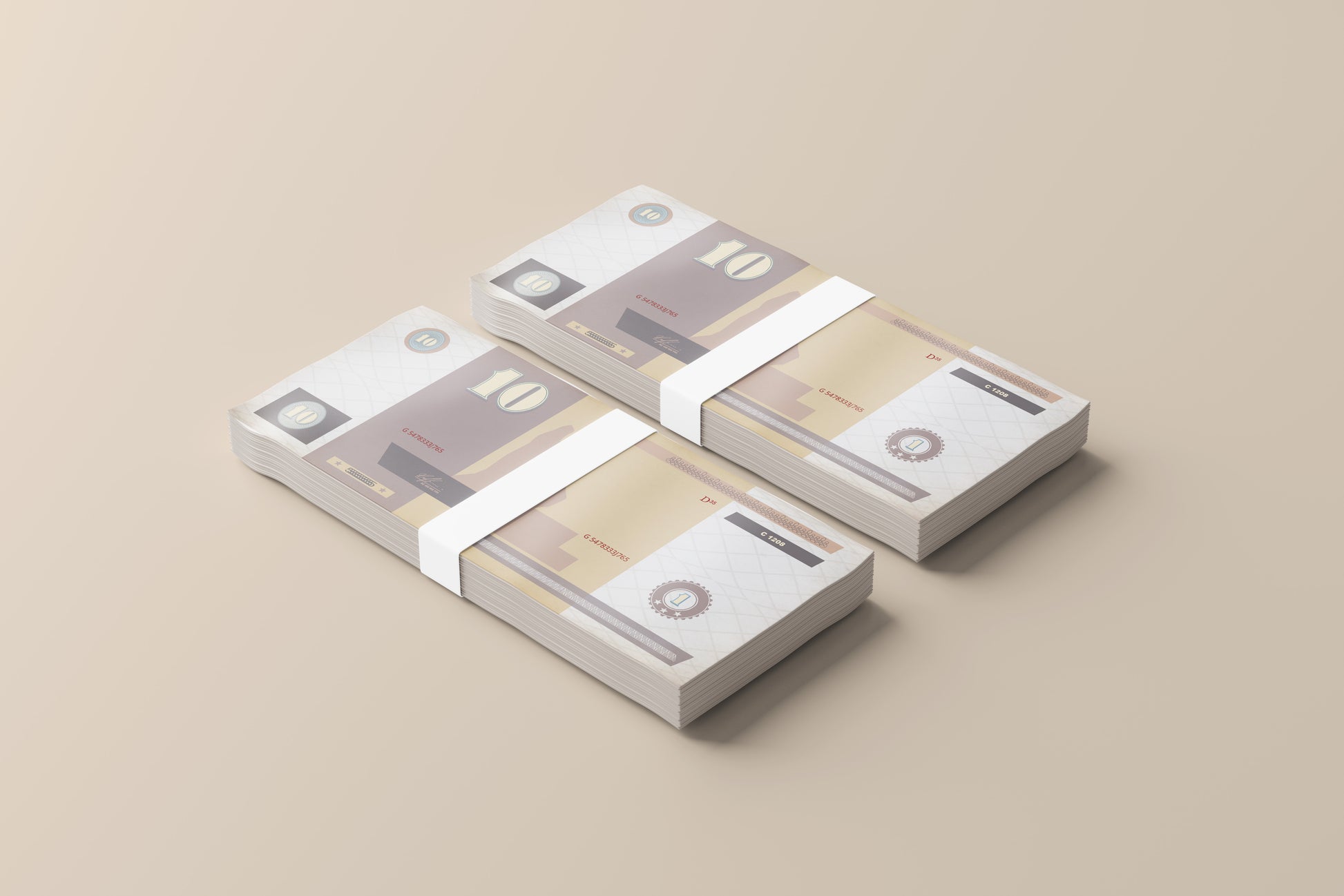 A stylized cinematic prop banknote designed with a refined minimalist aesthetic, Ten Bill blends mid-century tones with abstract graphic silhouettes. The piece evokes a sense of fictional currency from an alternate world — sophisticated, slightly dystopian, and visually balanced.