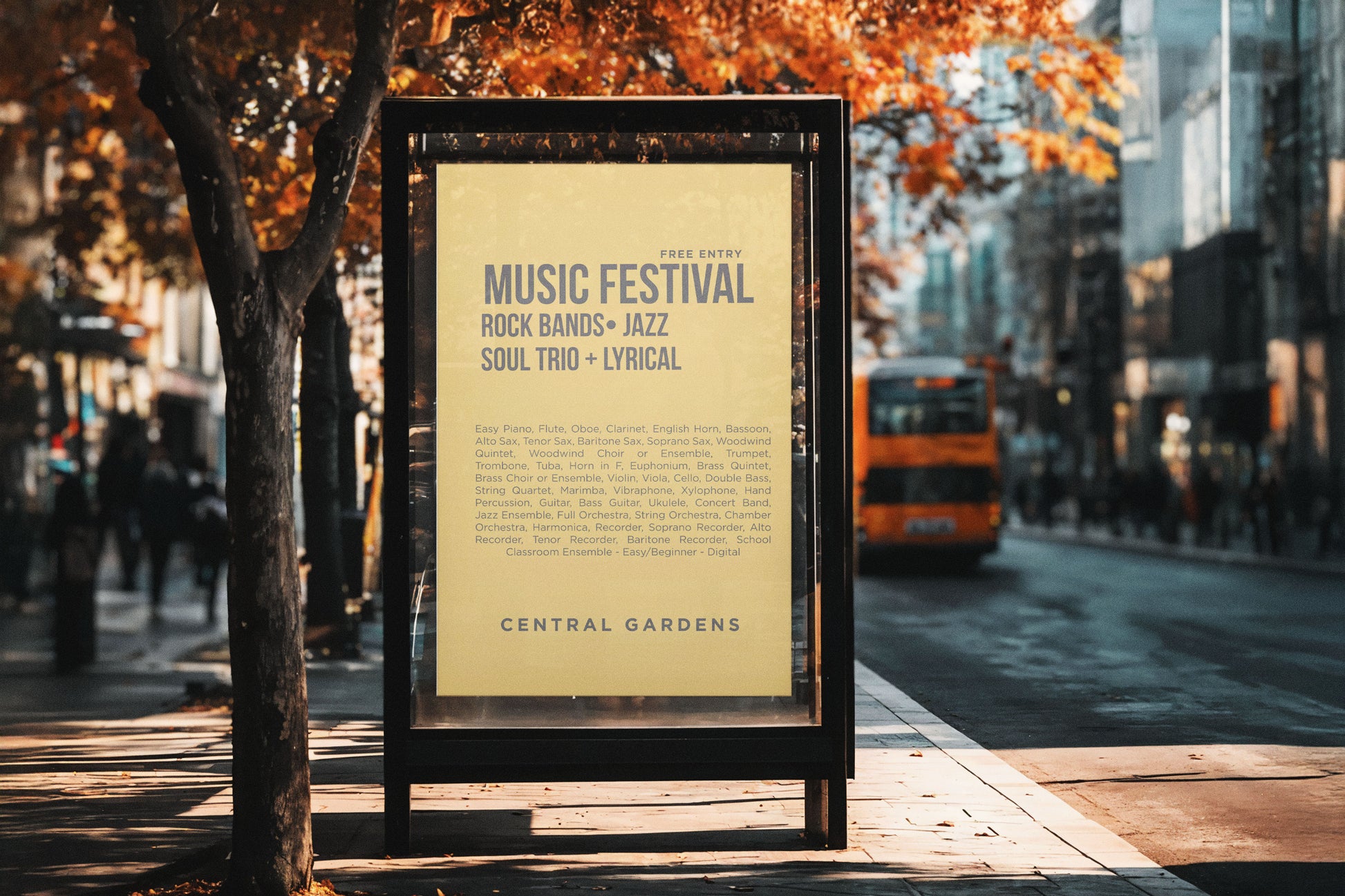Its simple yet refined aesthetic makes it perfect as wall décor or as a realistic prop for film, theatre, commercials, and music-related set dressing. The understated palette and structured text layout give it a timeless, versatile look suitable for cafés, studios, rehearsal rooms, or creative workspaces.