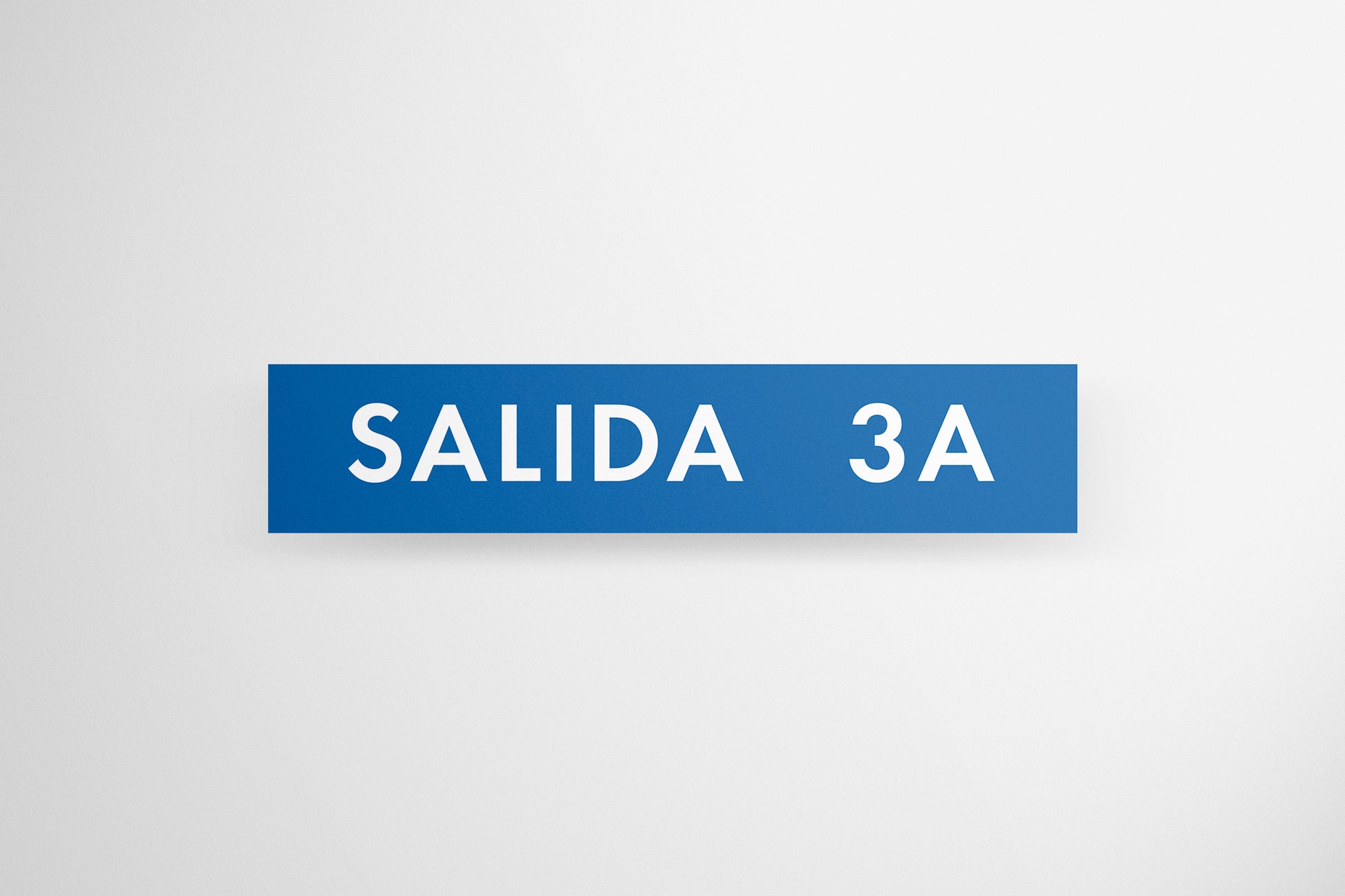 Realistic highway exit sign prop designed for film, TV, commercial, or stage productions requiring authentic Mexican road signage. This artwork features the text “SALIDA 3A” in bold white lettering over a clean blue background, replicating the minimal and highly legible style used on modern road systems. The spacing, proportions, and simplicity make it instantly recognizable as functional transit signage.