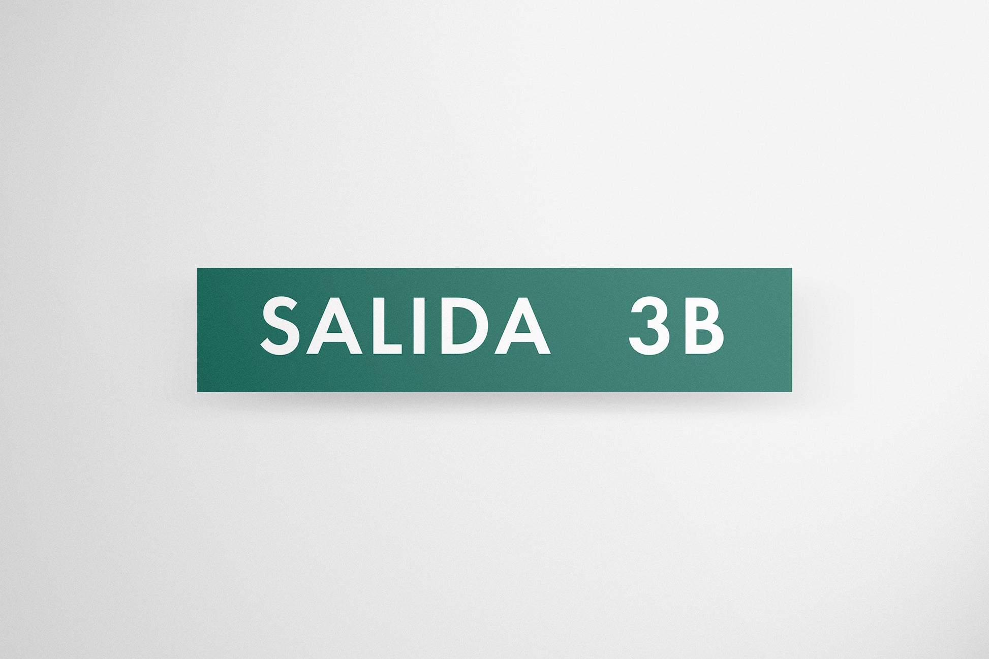 This piece recreates the clean look of contemporary Mexican directional signage, featuring “SALIDA 3B” in crisp white lettering over a deep green panel. The structured layout, generous spacing, and utilitarian font make it feel completely authentic—perfect for scenes set in highways, transit zones, institutional corridors, or any modern urban environment.