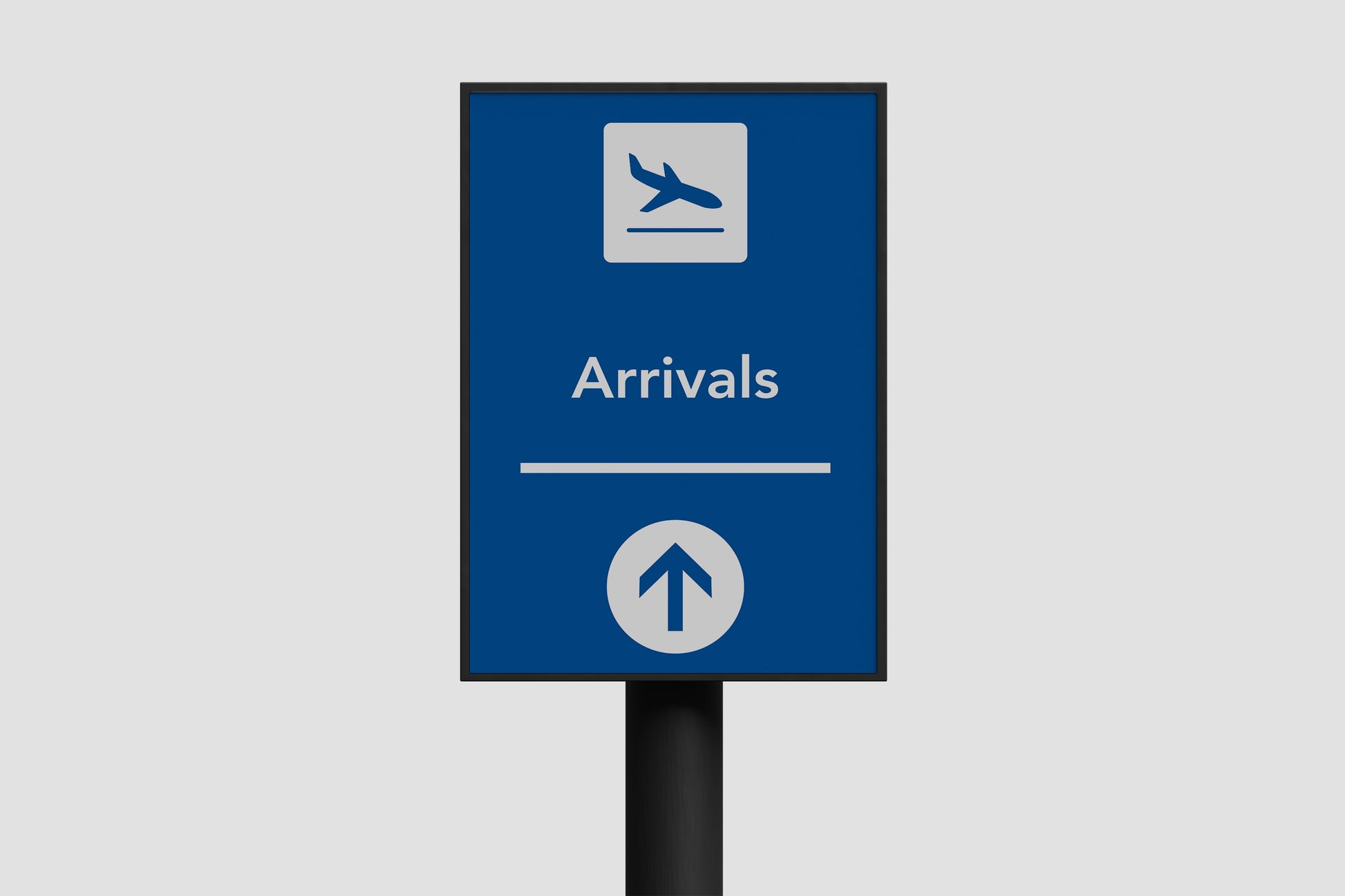 Clean, modern airport-style signage design, perfect as a wall print or production-ready prop for film, TV, and commercial sets.
