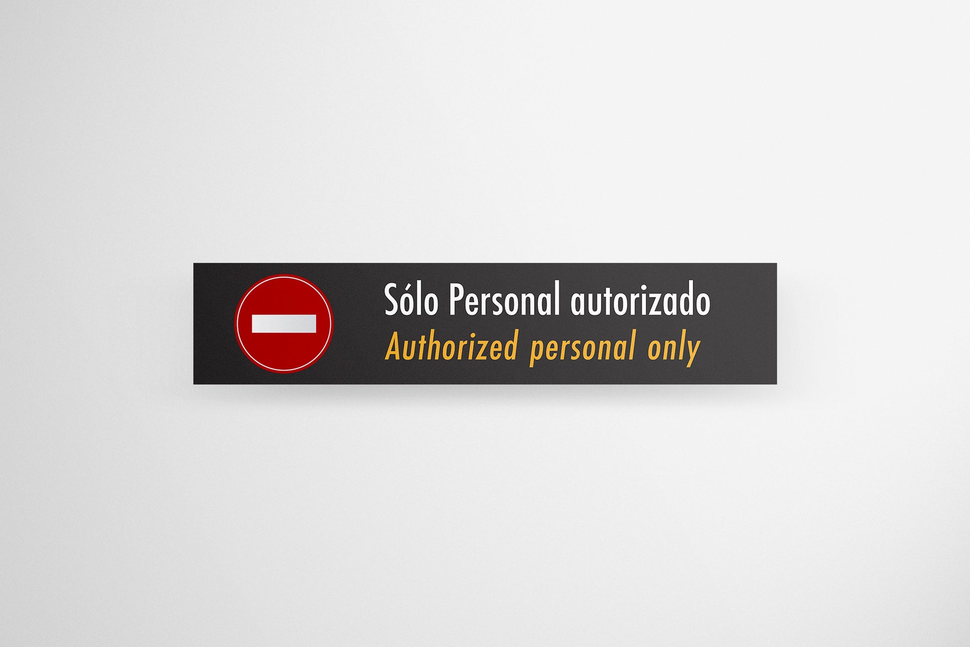 A bold and modern "Authorized Personnel Only" sign, perfect for adding a professional, industrial feel to any space. This design features a striking red "No Entry" icon alongside clear and crisp bilingual text—"Sólo Personal autorizado" in Spanish and "Authorized personnel only" in English—making it ideal for settings that require a touch of functional, yet stylish, signage.
