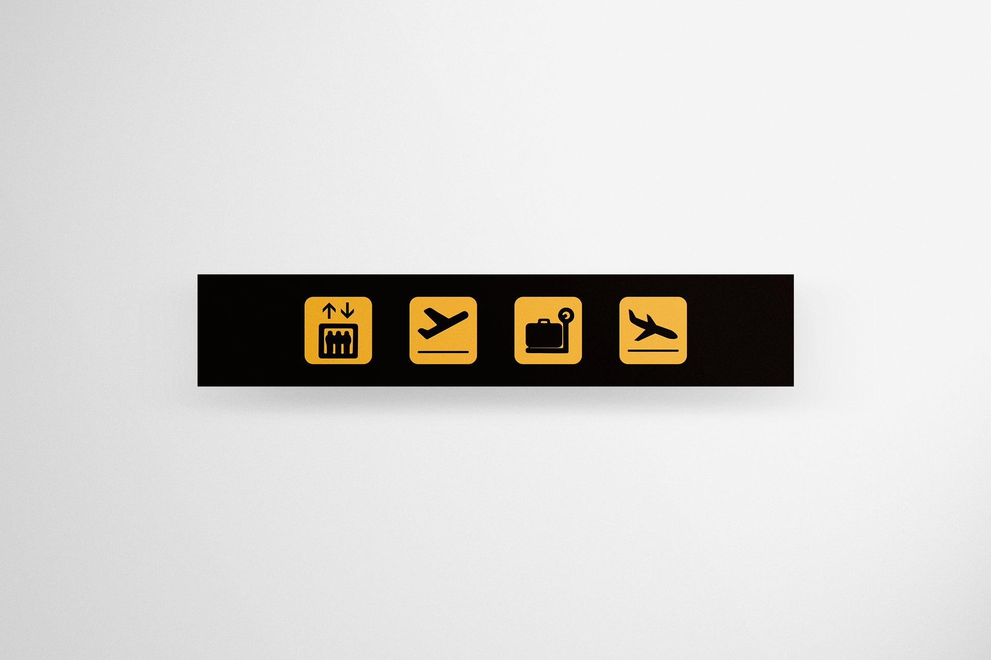 Contemporary airport icon signage design, perfect for use as a prop in film, stage productions, or modern décor.