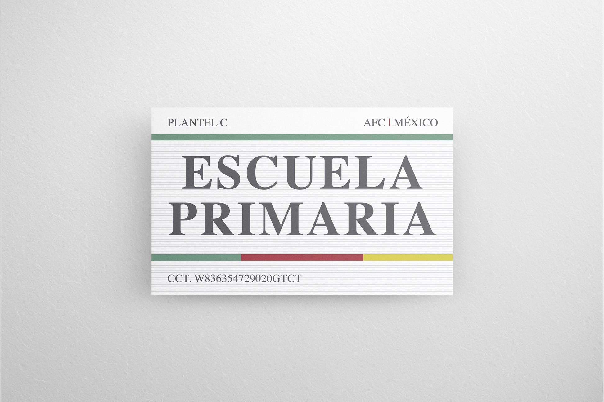 This artwork features a vintage Mexican "Escuela Primaria" (Elementary School) sign, designed with the iconic color scheme of the Mexican flag. The bold typography in a classic, structured layout evokes a sense of nostalgia and authenticity. With its modernist aesthetic, this sign is a perfect representation of school signage from the late 20th century in Mexico, ideal for setting up an educational or urban backdrop.