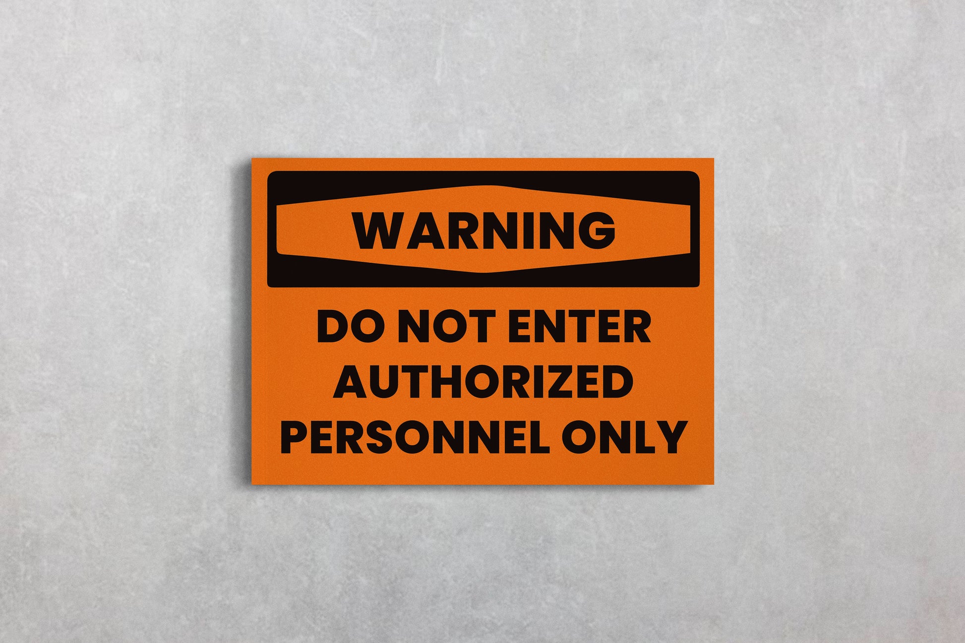 This design features the bold message “WARNING – DO NOT ENTER – AUTHORIZED PERSONNEL ONLY” in solid black typography against a vivid orange background — a color scheme commonly seen in real construction and hazard signage. Its clean geometry and retro utility aesthetic make it ideal for adding an industrial or cinematic touch to any environment.